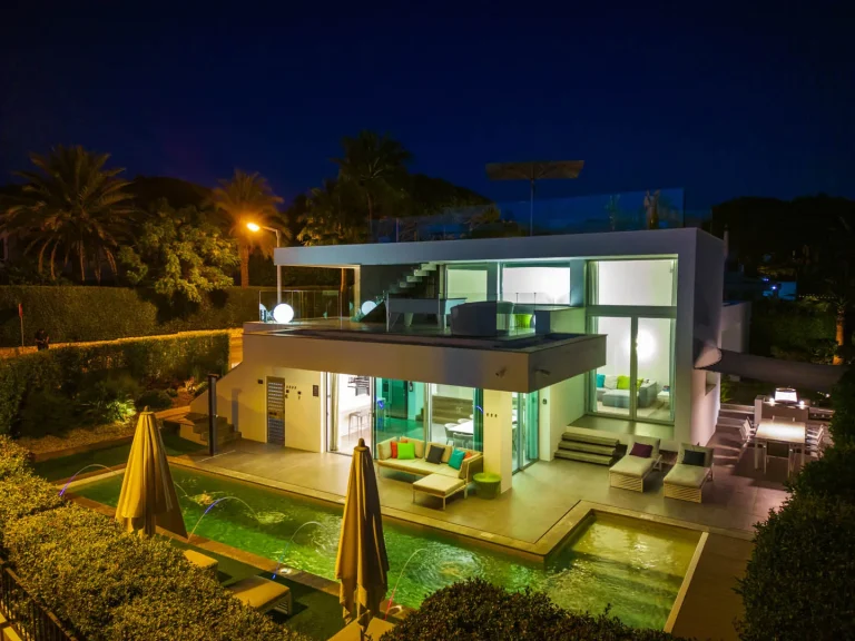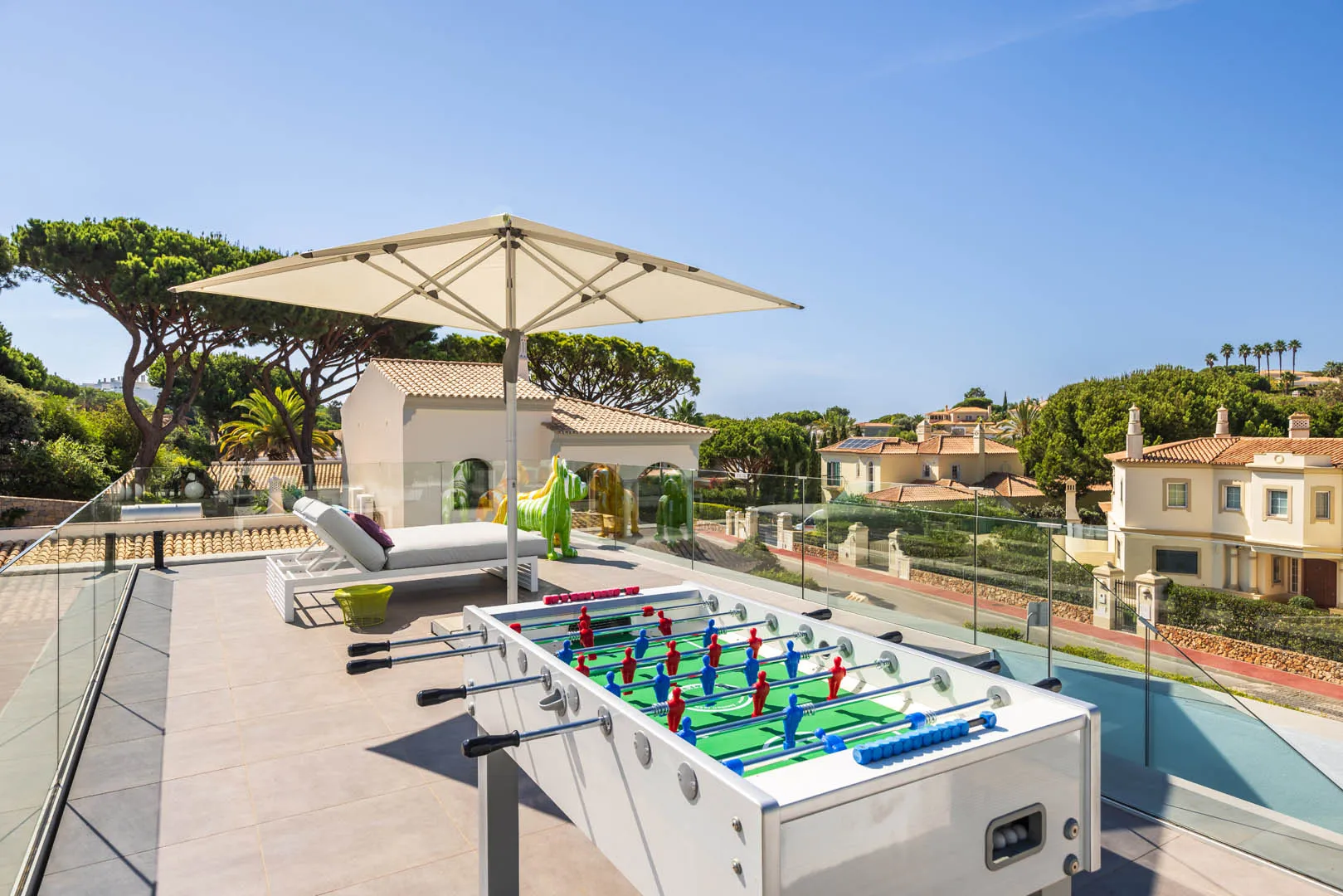 Just 20 minutes’ drive from Faro Airport – no long transfers! Villa Bam boasts a panoramic rooftop sundeck, automated blinds and curtains, safety deposit boxes, CCTV, monitored intruder alarm, automated gates, heated pool with jumping water fountain jets, automated lockable pool cover (safe for children), jacuzzi bath, Sonos sound system, outdoor pool table, football table, 750mb superfast fibre broadband, cable TV, feature fireplace and much more! The Villa comfortably sleeps up to 8 people and has 2 x Super King size, 1 x King size and 1 x Twin Double. With a stunning interior, contemporary outdoor furniture, a beautiful landscaped garden and even slippers to lounge around in – everything is covered for a relaxing stay!