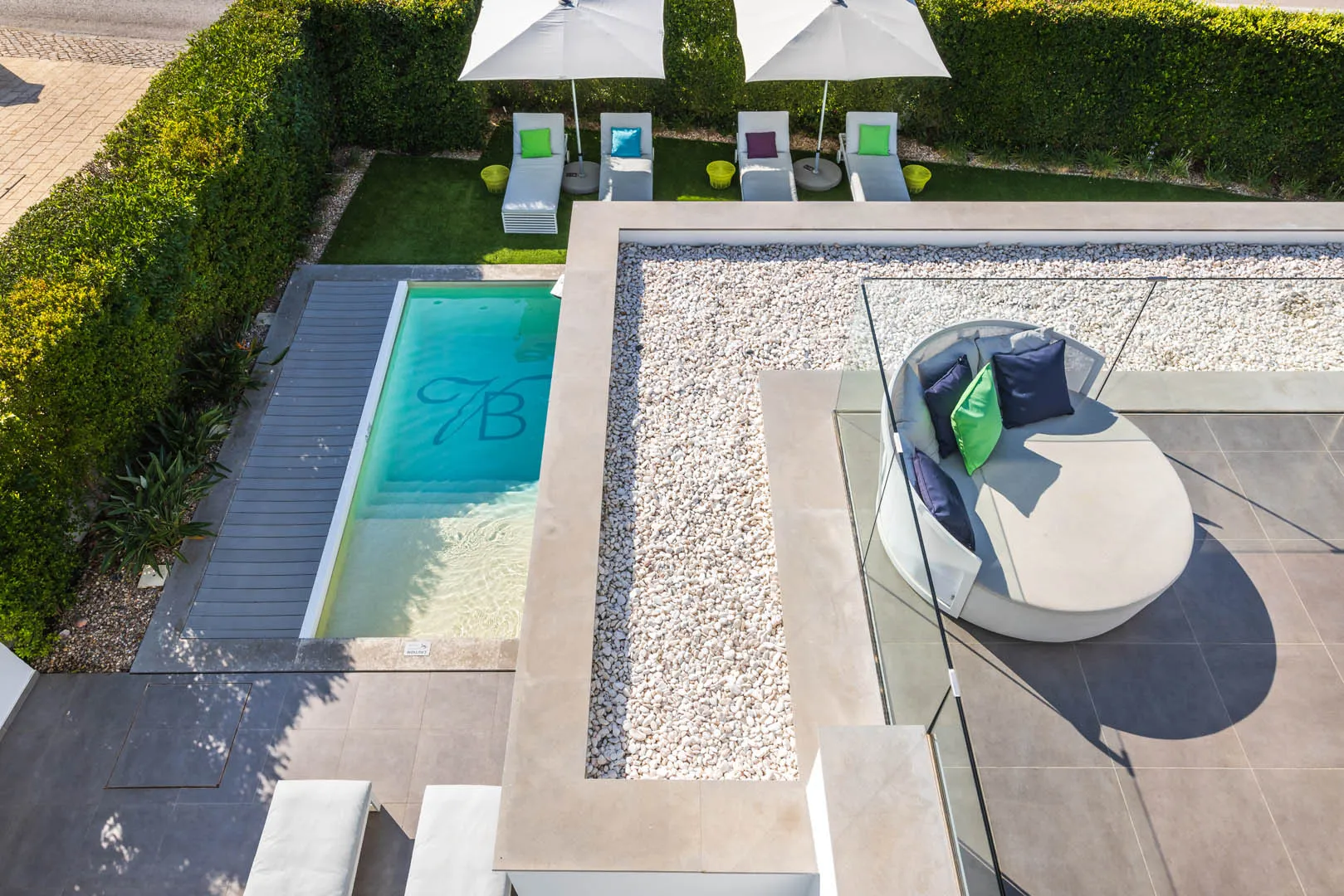 Your exclusive outdoor oasis awaits with a stunning private pool that can be heated for year-round enjoyment. Premium sun loungers invite leisurely afternoons of basking in the Portuguese sunshine, while a refreshing outdoor shower provides the perfect cool-down. This serene retreat offers both privacy and sophistication for unforgettable al fresco moments.