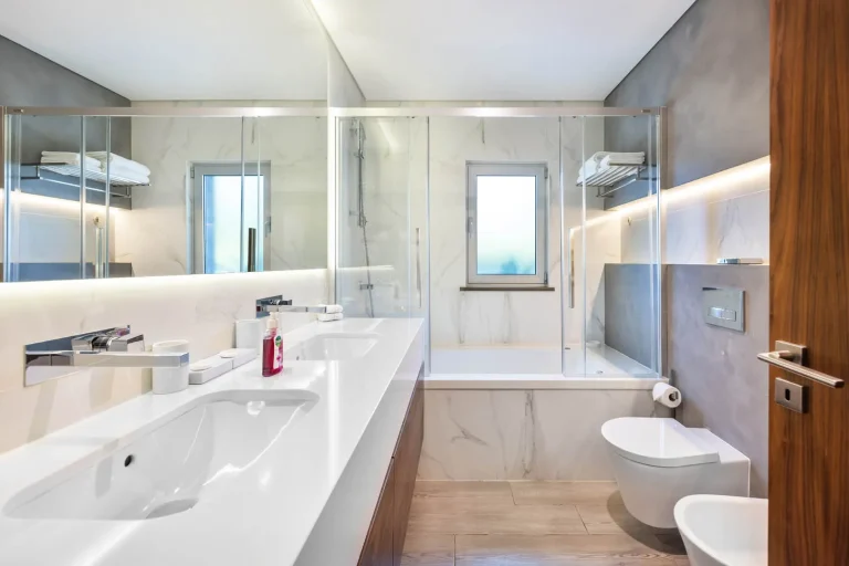 Pamper yourself in four luxuriously appointed bathrooms featuring premium fixtures and designer amenities. Two en-suite bathrooms offer private sanctuaries of relaxation, while an additional family bathroom ensure everyone enjoys spa-like comfort. Polished stone surfaces, rainfall showers, and plush towels create an atmosphere of indulgent refinement.